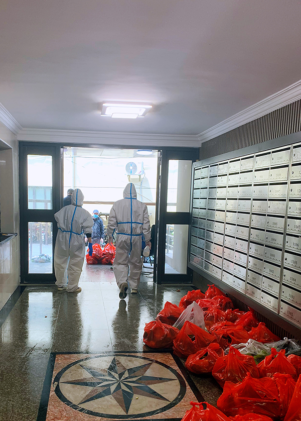 “與其宅家悶得慌,不如志愿鄰里幫”。 在上海,許多志愿者堅守一線,疫情防控志愿服務持續(xù)處于高位運轉。為配合社區(qū)防控工作,宏銀小伙伴們也紛紛挺身而出,化身“大白”,毅然加入到了防疫志愿者大軍中,做力所能及之事。如幫小區(qū)發(fā)放保供物資、協(xié)助組織小區(qū)內核酸檢查、維持核酸檢查秩序、幫助小區(qū)內有困難的鄰居配送藥物等……他們用實際行動,以自己的方式守護著這座城,貢獻著自己的一份力量。
