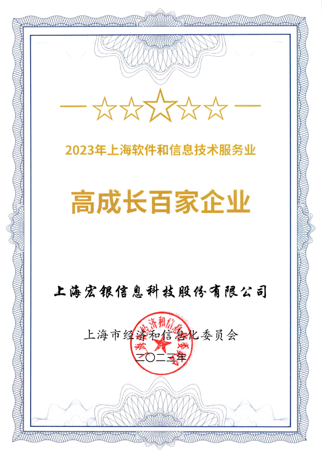 榮譽(yù) | 宏銀信息入選“2023上海軟件和信息技術(shù)服務(wù)業(yè)高成長(zhǎng)百家”